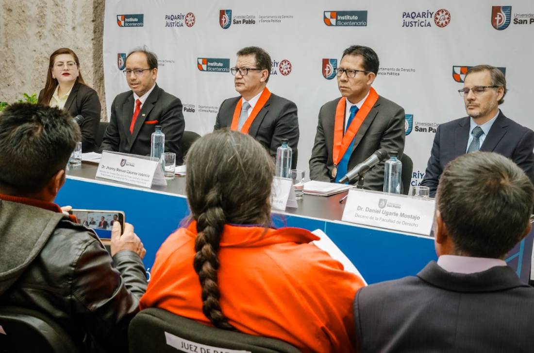 El proyecto fue presentado oficialmente en una actividad que contó con la participación del vicerrector académico de la UCSP, Dr. Efraín Zenteno Bolaños; del director del Departamento de Derecho y Ciencia Política, Dr. Daniel Ugarte Mostajo; del presidente de la Corte Superior de Justicia de Arequipa (CSJA), Dr. Nicolás Iscarra Pongo; y del Dr. Johnny Manuel Cáceres Valencia, miembro del Consejo Ejecutivo del Poder Judicial y consejero responsable de la Justicia de Paz y Justicia Intercultural.