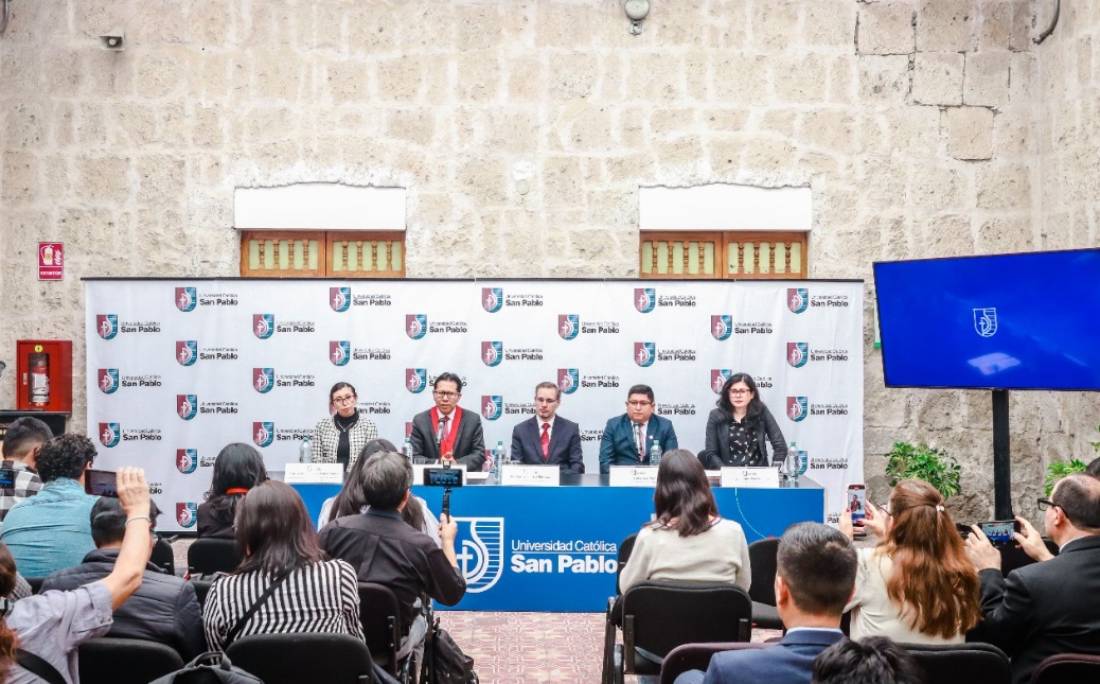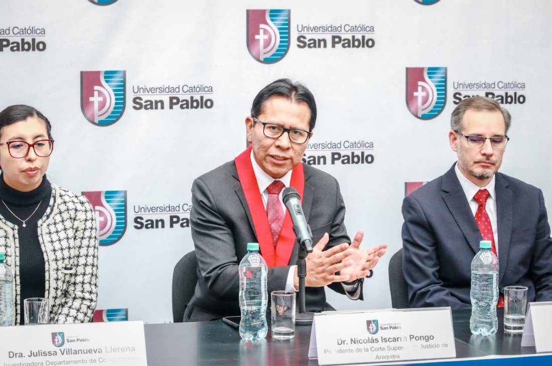 Para presentar este proyecto se realizó una conferencia de prensa que contó con la participación de los investigadores de la UCSP y del Dr. Nicolás Iscarra, presidente de la Corte Superior de Justicia de Arequipa, quien destacó el trabajo de la San Pablo como un aporte valioso desde la academia para mejorar el servicio de justicia en el país. Cabe indicar que ambas instituciones han suscrito un convenio de cooperación.