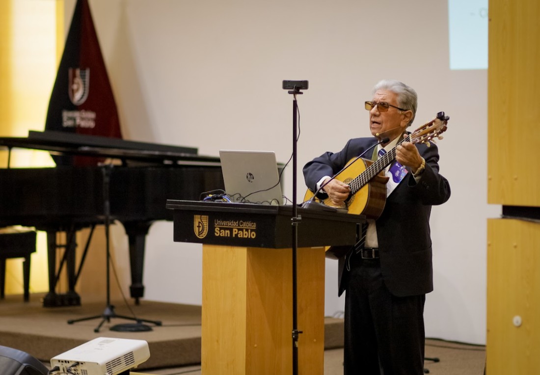 Maestro Augusto Vera Béjar, reconocido músico, compositor y director de orquesta. Es también director y fundador de la Orquesta Filarmónica Juvenil de la UCSP.