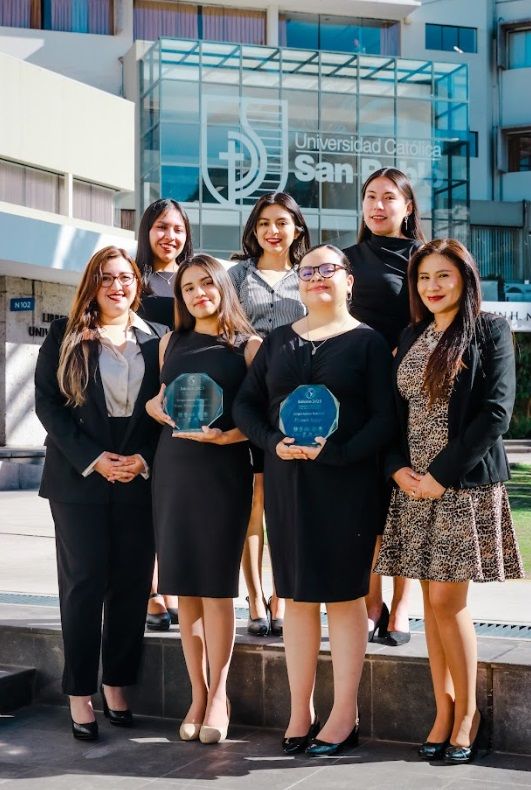 El equipo que representó a la San Pablo y al Perú, lo integraron: Alessa Soza Vela, Nora Villasante Medina, Camila Bedregal Paredes y Gabriela Benavente Flores (oradoras); Kimberly Rosas Tejada y Alejandra Cruz Mejía (observadoras). Todas ellas trabajaron bajo la guía y entrenamiento de la abogada Claudia Ximena Tejada Pacheco, egresada de la UCSP, y la catedrática Devora Franco García.